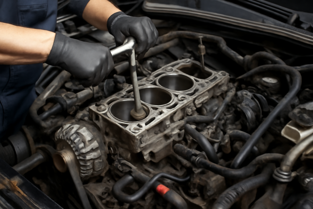 Включает в себя визуальный осмотр двигателя на наличие течей и запотеваний эксплуатационных жидкостей, целостность узлов, определение на слух или с помощью специального оборудования посторонних шумов и стуков.